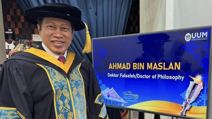 公共工程部副部长拿督斯里阿末马斯兰成功在北方大学完成传播学博士学位,并将在本月举行的北大第38届毕业典礼上领取博士学位。